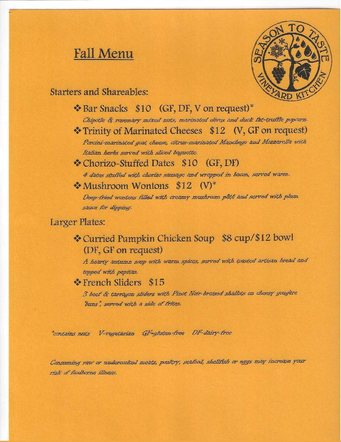 Join us as we introduce our new Fall menu. Tapas style with lots of vegan, gluten free and vegetarian options available.